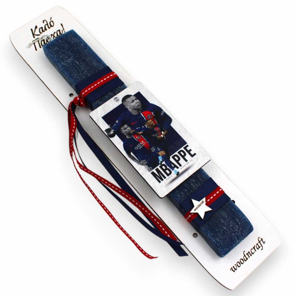 Διακοσμημένη με μια εντυπωσιακή ξύλινη φιγούρα 10 εκ., εκτυπωμένη με UV, απεικονίζει τον κορυφαίο αστέρα του ποδοσφαίρου, Kylian Mbappé, σε δυναμικές στιγμές αγώνα.