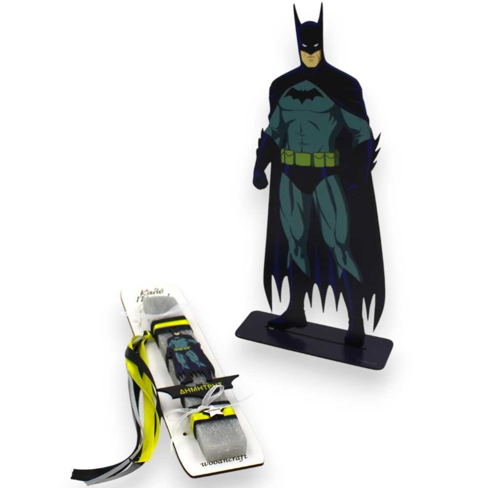 Το σύνολο ολοκληρώνεται με μια μεγαλοπρεπή επιτραπέζια ξύλινη φιγούρα Batman 35 εκ., που θα στολίσει το παιδικό δωμάτιο ακόμα και μετά το Πάσχα!