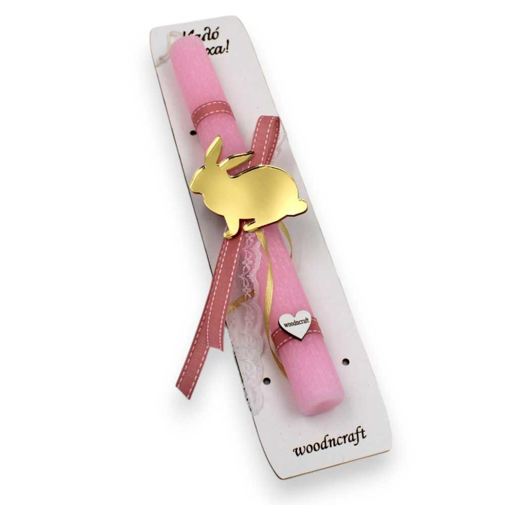 Ροζ πασχαλινή λαμπάδα, κυλινδρική και αρωματική, ύψους 25 εκ., ιδανική για ένα ξεχωριστό και κομψό πασχαλινό δώρο.
