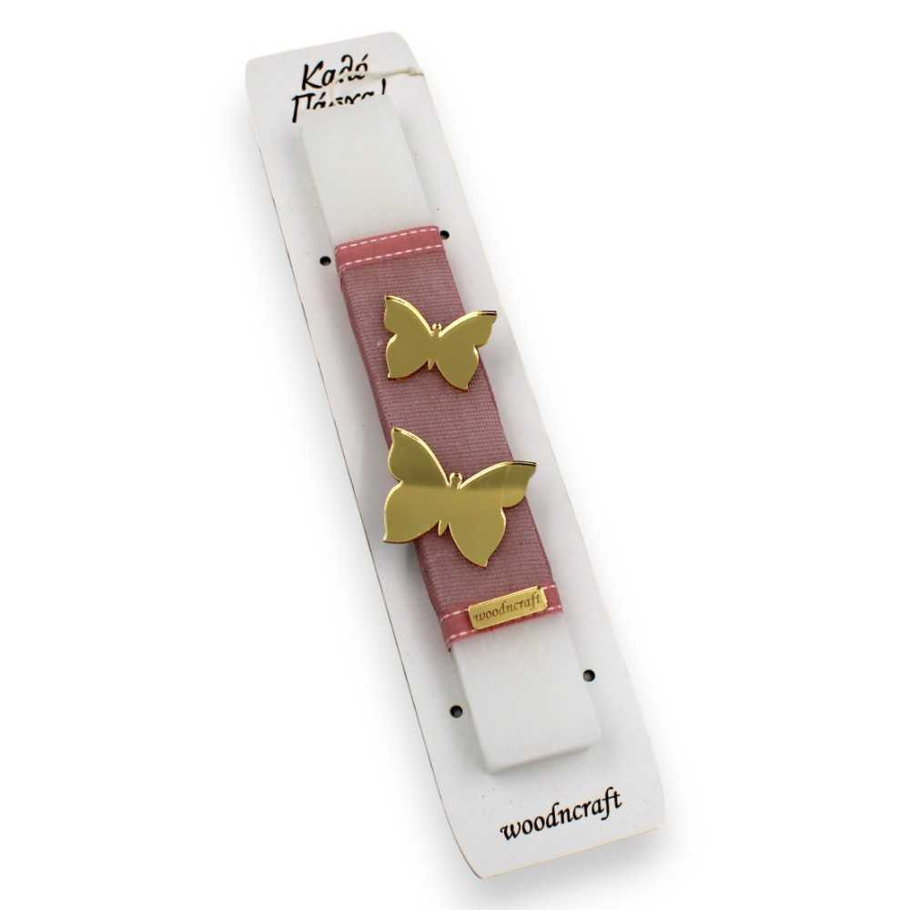 Η διακόσμηση ολοκληρώνεται με δύο πεταλούδες από χρυσό καθρέφτη πλεξιγκλάς, προσθέτοντας διακριτική λάμψη και κομψότητα στο σύνολο.