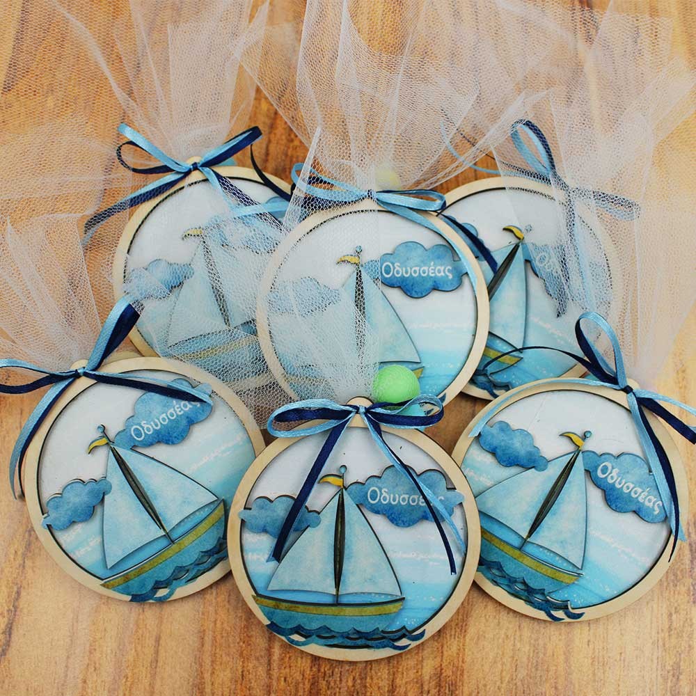 Μπομπονιέρα ξύλινο καδράκι - καράβι στη θάλασσα