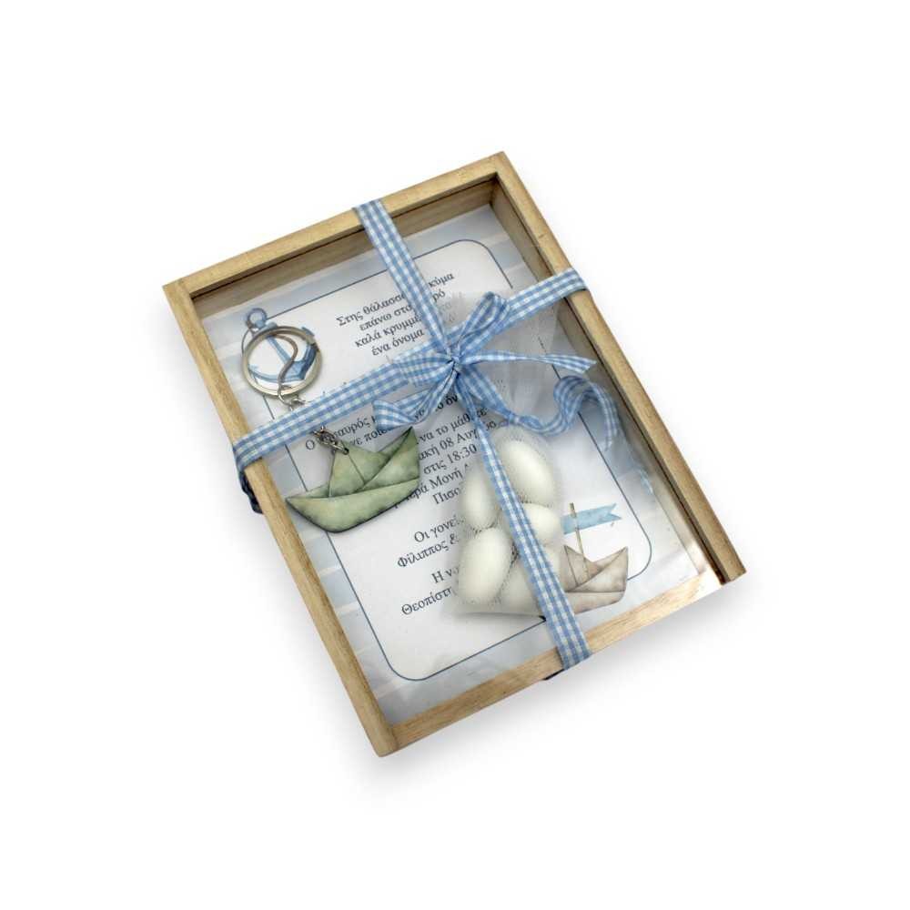 Μπομπονιέρα Προσκλητήριο σε Κουτί - μπρελόκ βαρκούλα