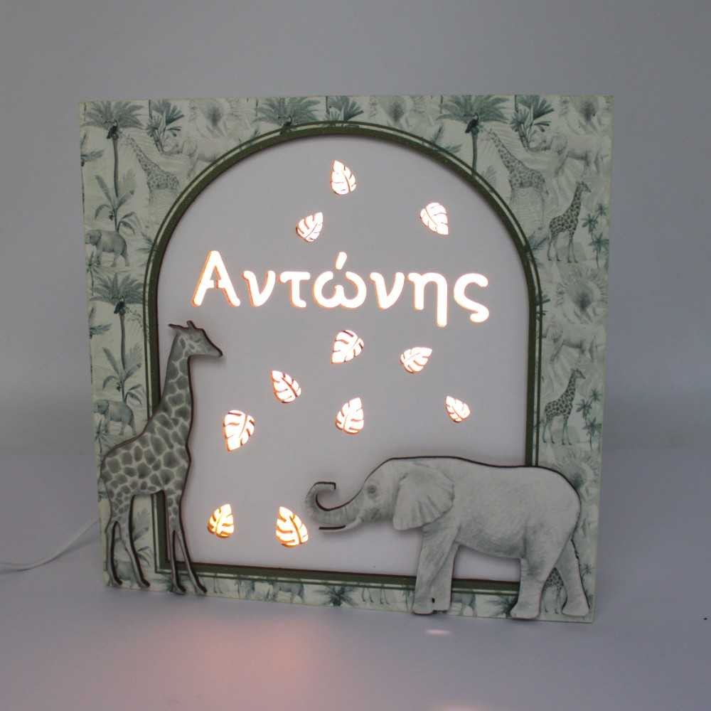 Ξύλινο φωτιστικό με όνομα - Ζούγκλα