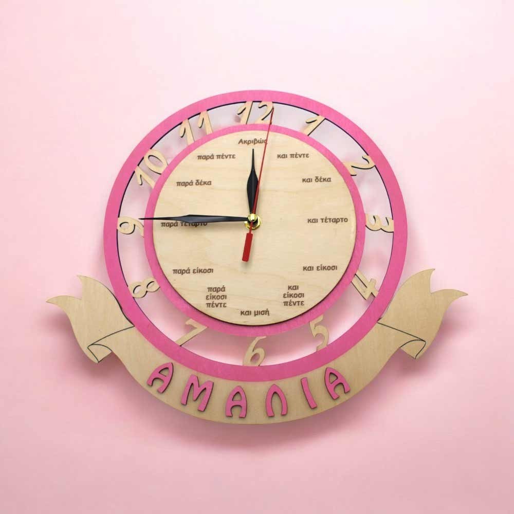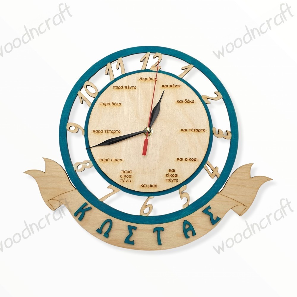 Ξύλινο ρολόι με όνομα - Εκμάθηση της ώρας