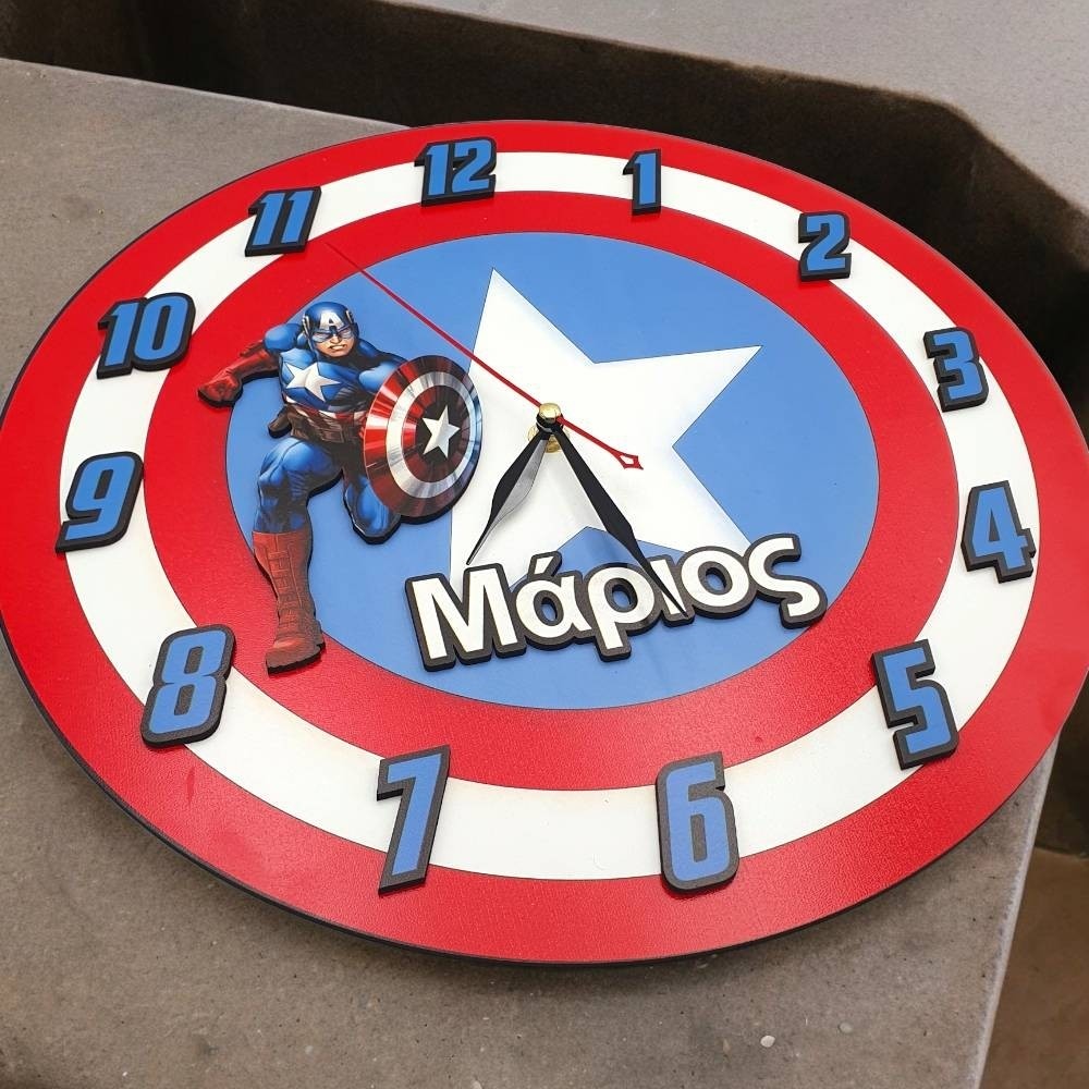 Ξύλινο προσωποποιημένο ρολόι - Captain America