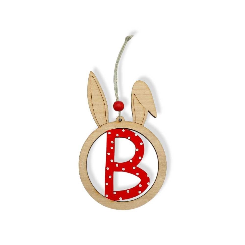 Ξύλινα πασχαλινά στολίδια με μονογράμματα της επιλογής σας, βαμμένα στα χρώματα που επιθυμείτε και διακοσμημένα με σπάγκο και ξύλινη χάντρα.
