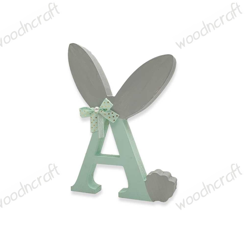 Μοναδικό ξύλινο αυτοστηριζόμενο διακοσμητικό με το μονόγραμμα της επιλογής σας με προσαρμοσμένα αυτάκια και ουρά από κουνελάκι! Βάφεται στο χέρι σε χρώματα της επιλογής σας και διακοσμείται με ανάλογο κορδελάκι.