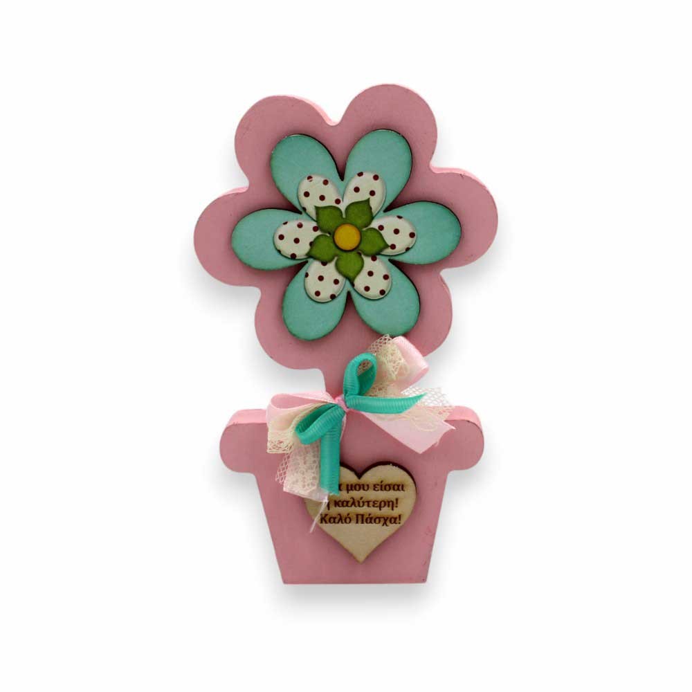 Ξύλινο Διακοσμητικό Γλαστράκι - Ανθισμένη Ευχή