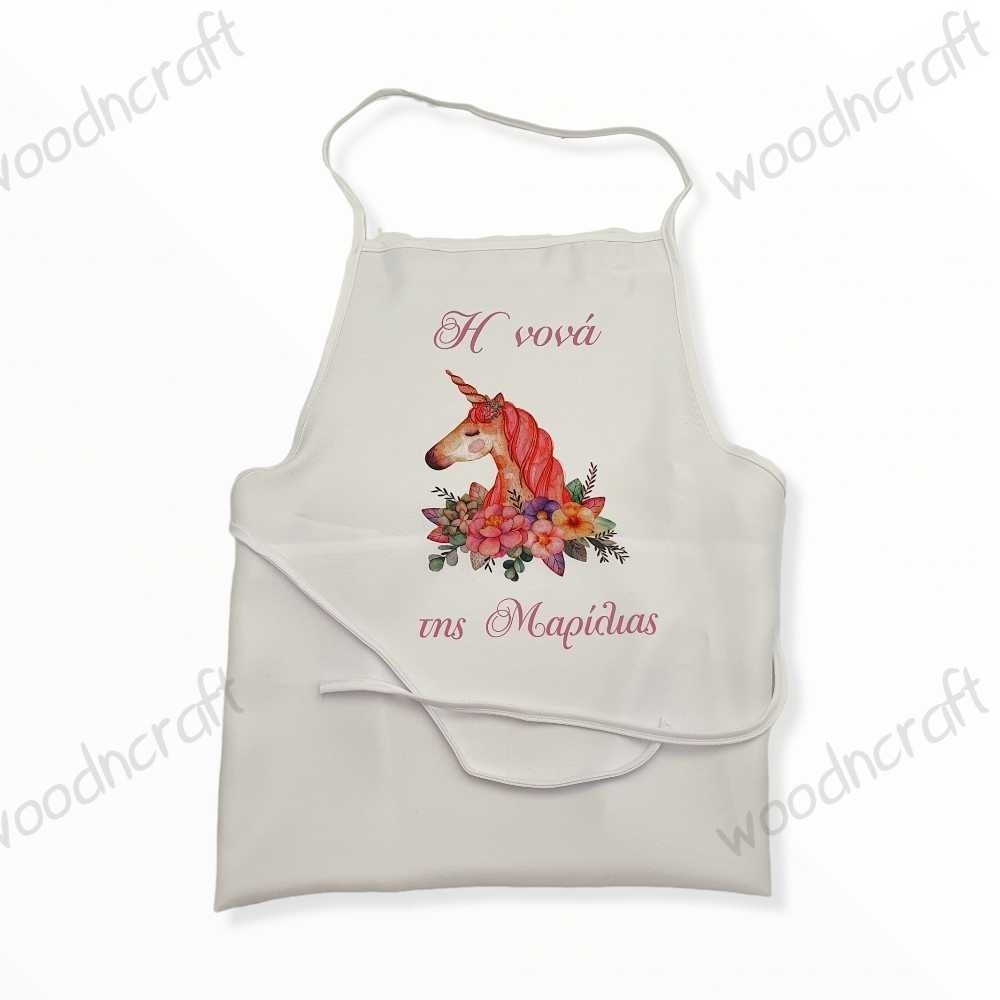 Μοναδική unisex προσωποποιημένη ποδιά βάφτισης σε θέμα μονόκερος με λουλούδια! Μπορούν να μπουν ονόματα ή κάποια αφιέρωση της επιλογής σας. Η νούμερο ένα επιλογή αν ετοιμάζετε βάφτιση ή παιδικά γενέθλια σε ανάλογο θέμα!