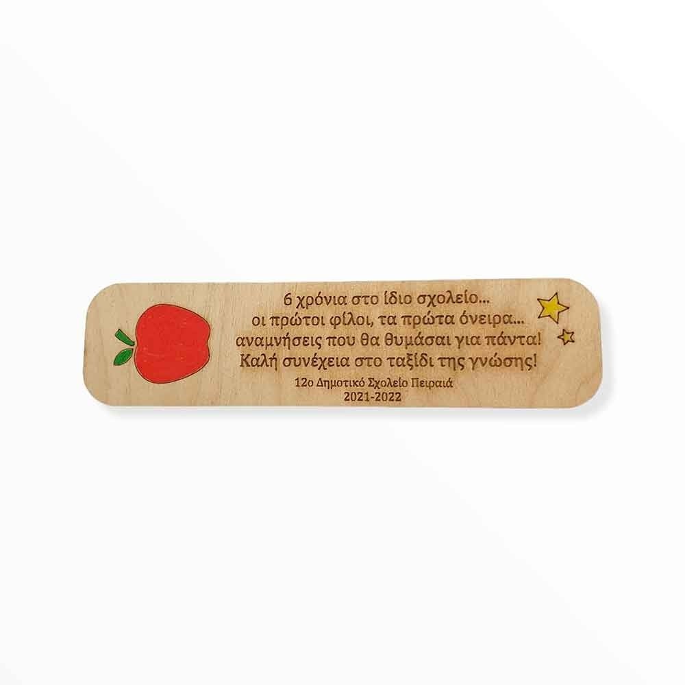 Ξύλινοι σελιδοδείκτες με το μήλο της γνώσης και χαραγμένη πάνω η αφιέρωση που θέλετε. Ιδανικό δωράκι για τους μαθητές για την έναρξη και την λήξη της σχολικής χρονιάς.