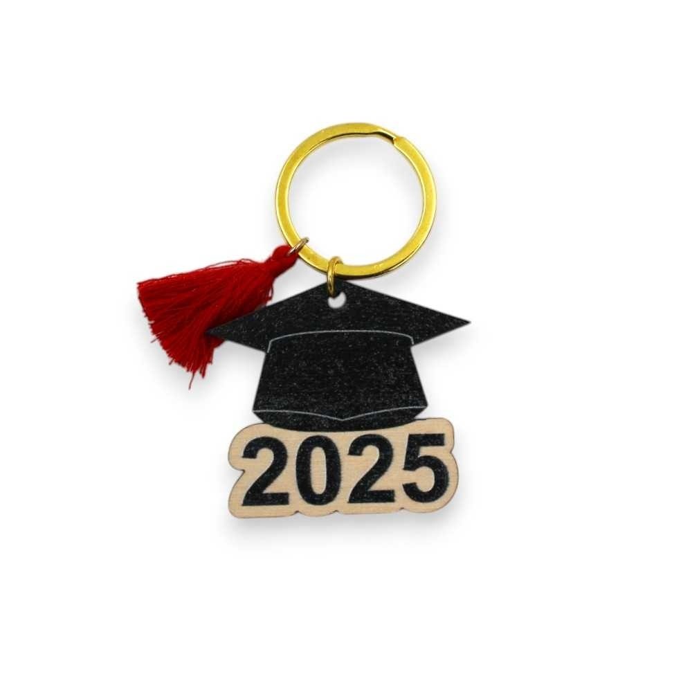 Ένα ξεχωριστό ξύλινο μπρελόκ διαστάσεων 5 εκ., σχεδιασμένο σε σχήμα καπέλου αποφοίτησης, με εκτύπωση που αποτυπώνει το σχολικό έτος, το όνομα του σχολείου και τη φράση «Καλή Σταδιοδρομία!».