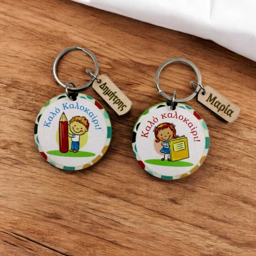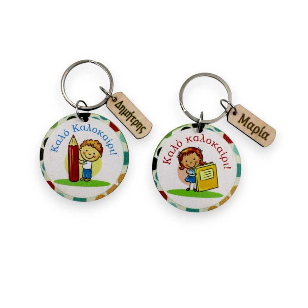 Χαρίστε στους μικρούς μαθητές ένα ξεχωριστό και προσωπικό ενθύμιο με αυτά τα υπέροχα ξύλινα μπρελόκ, διαμέτρου 5 εκ., με υψηλής ποιότητας UV εκτύπωση.