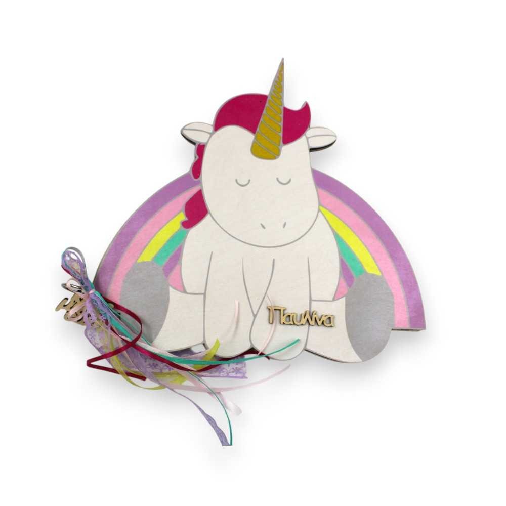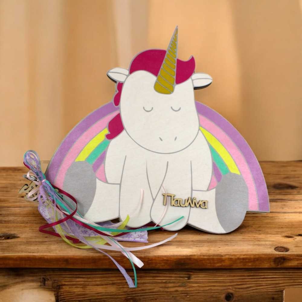 Ξύλινο βιβλίο ευχών - Rainbow unicorn
