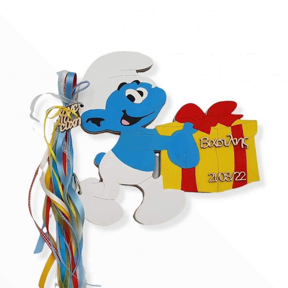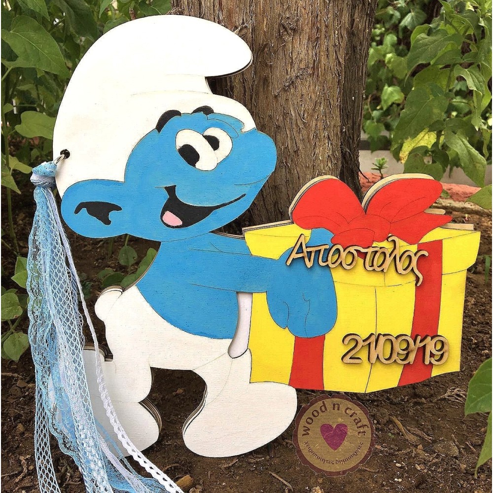 Ξύλινο βιβλίο ευχών - Στρουμφάκι με δώρο