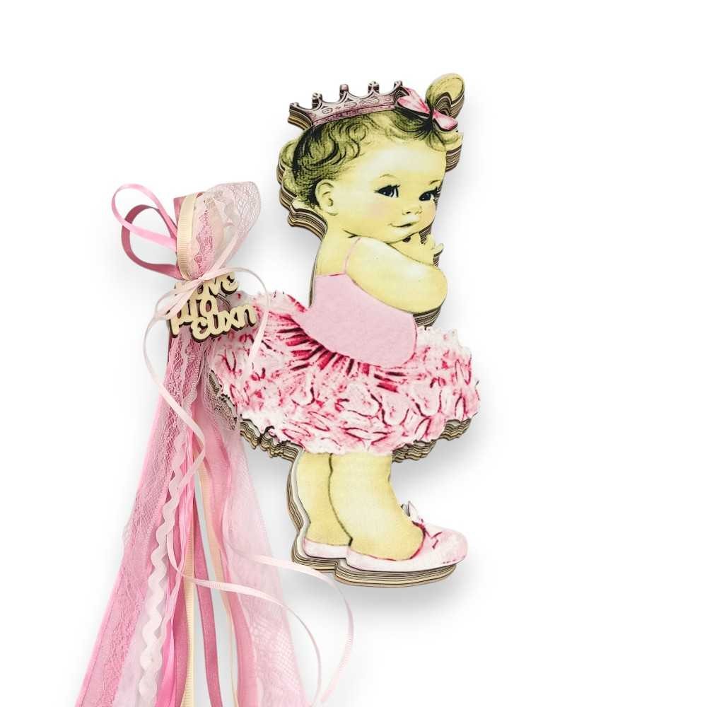 Ξύλινο χειροποίητο ευχολόγιο για στολισμό βάφτισης ή παιδικού πάρτι σε σχέδιο μπέμπα μπαλαρίνα! Η εκτύπωση γίνεται σε χρώματα της επιλογής σας και η διακόσμηση με ανάλογα κορδελάκια, δαντέλα, ξύλινο στοιχείο ''κάνε μια ευχή'' και κρεμαστό το μονόγραμμα που θα διαλέξετε.