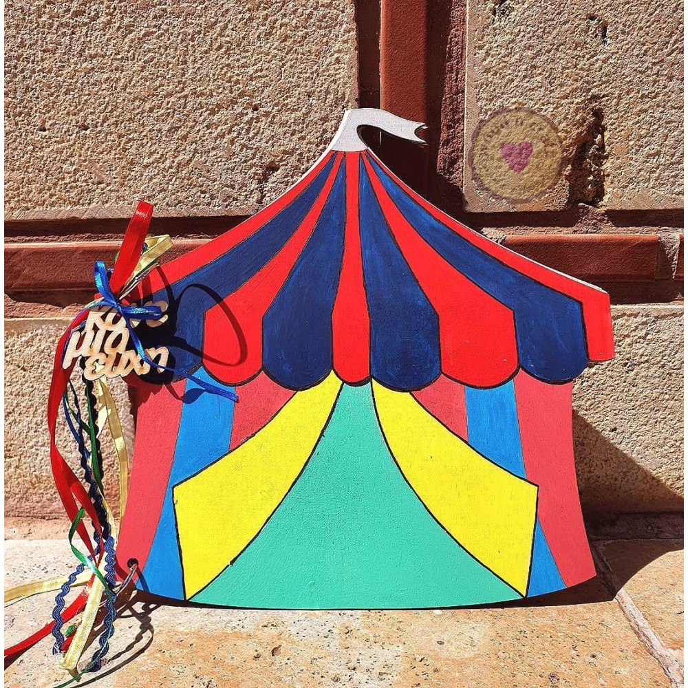 Ξύλινο βιβλίο ευχών σε σχέδιο σκηνή τσίρκου. Κρατήστε τις αναμνήσεις μιας αξέχαστης βάφτισης και δώστε μια ξεχωριστή πινελιά στον στολισμό! Τα χρώματά του αποτυπώνονται μέσα από μία υψηλής ποιότητας εκτύπωση, με βάση τα χρώματα που ταιριάζουν με την διακόσμηση που έχετε επιλέξει και διακοσμείται με ανάλογα κορδελάκια.