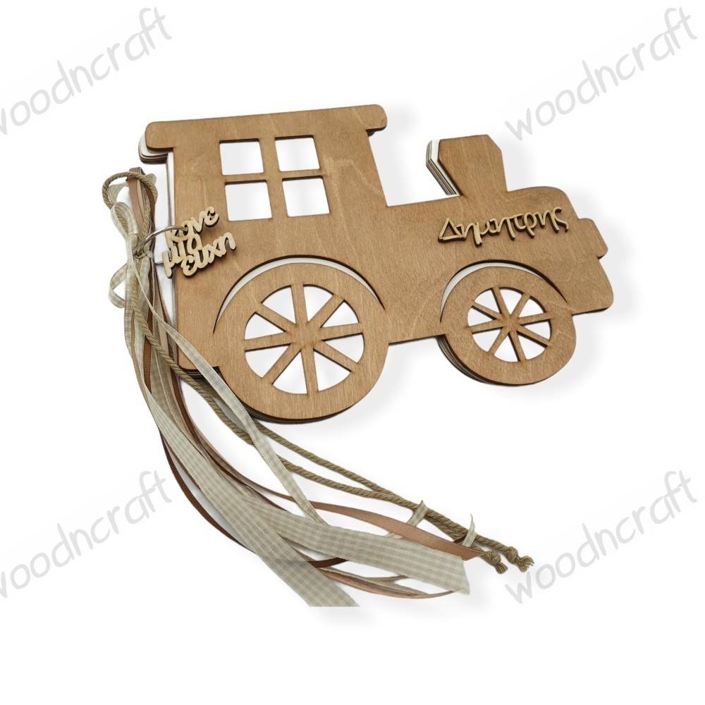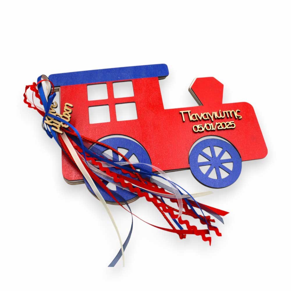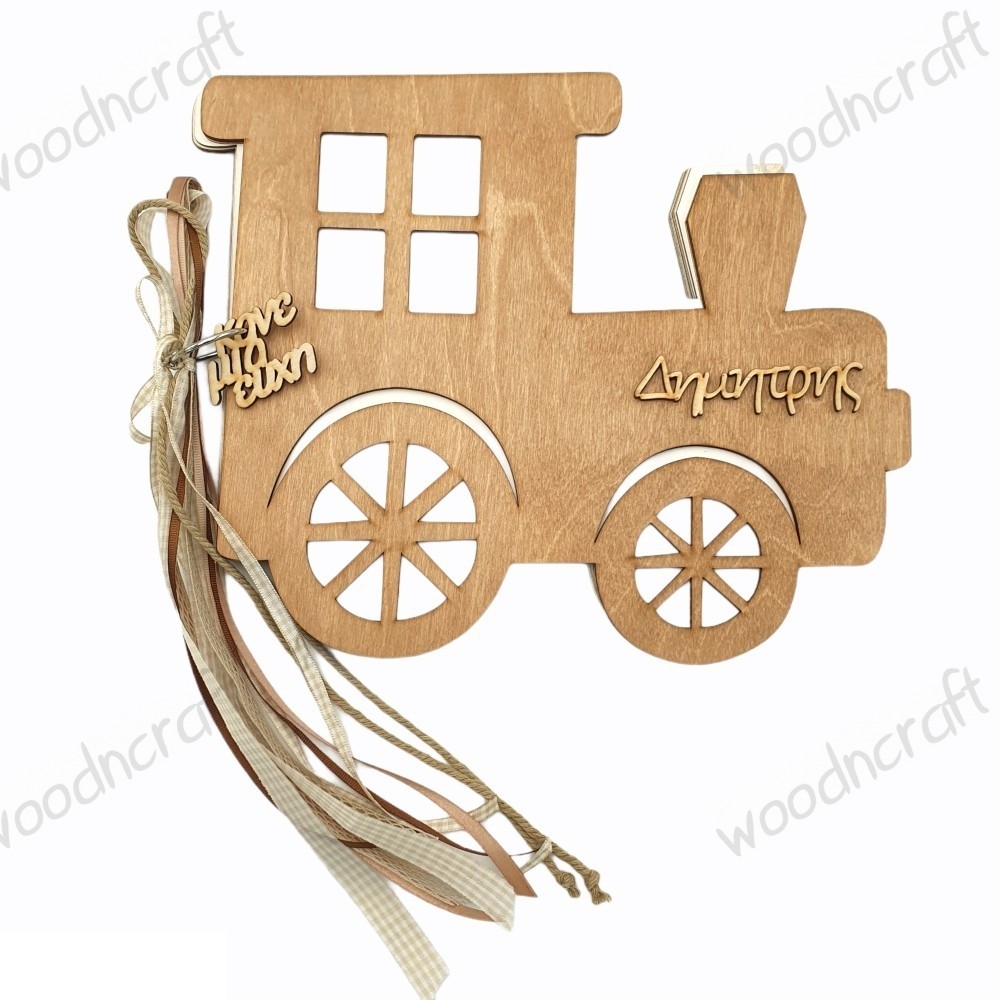 Χειροποίητο ξύλινο βιβλίο ευχών σε σχέδιο τρενάκι! Αν ετοιμάζετε βάφτιση σε ανάλογο θέμα, είναι η ιδανική επιλογή.. Σημειώστε σε ποιο χρώμα θέλετε να γίνουν το εξώφυλλο και τα κορδελάκια και θα διακοσμήσουμε το βιβλίο με το ξύλινο στοιχείο "κάνε μια ευχή" και προαιρετικά με το όνομα και την ημερομηνία της επιλογής σας!