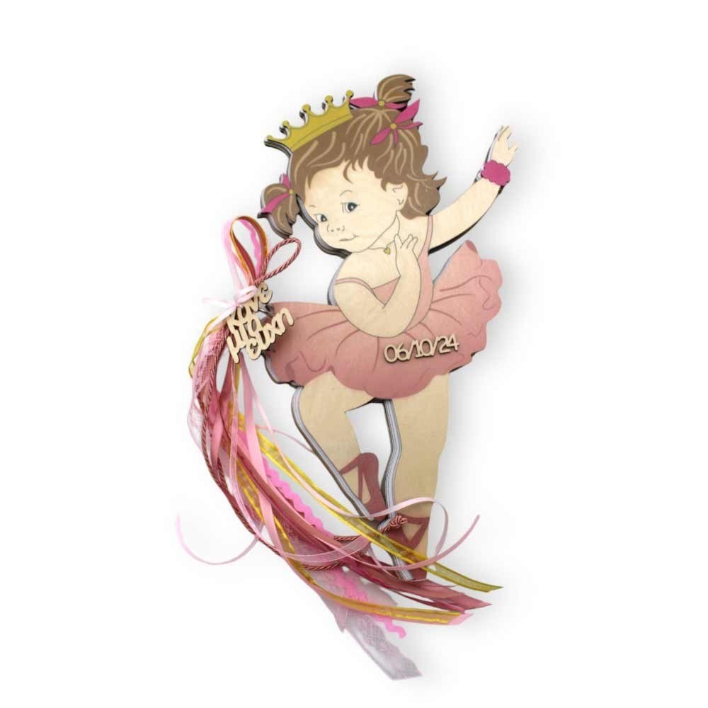 Ξύλινο χειροποίητο βιβλίο ευχών για στολισμό βάφτισης ή παιδικού πάρτι γενεθλίων σε σχέδιο μπέμπα μπαλαρίνα με κορώνα στο κεφάλι! Κατασκευάζεται στα δικά σας χρώματα και διακοσμείται με κορδελάκια, δαντέλα και ξύλινο στοιχείο κάνε μια ευχή!