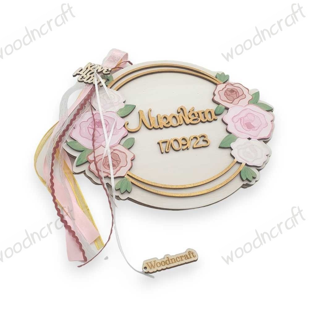 Ξύλινο βιβλίο ευχών - Στεφάνι με τριαντάφυλλα