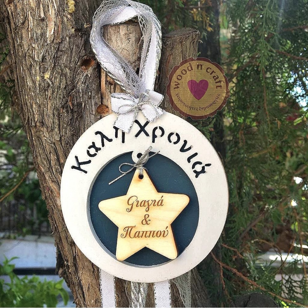 Πρωτότυπο ξύλινο χειροποίητο γούρι με ξύλινη μπάλα Καλή Χρονιά και κρεμαστό αστεράκι με δυνατότητα χάραξης της επιλογής σας για να χαρίσετε ένα δικό σας μοναδικό δώρο. Ξεχωριστά δωράκια για να χαρίσετε σε αυτούς που αγαπάτε για ένα όμορφο και δημιουργικό νέο έτος!