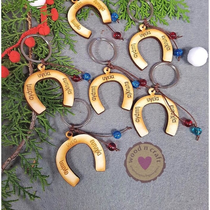 Πρωτότυπο ξύλινο χειροποίητο γούρι μπρελόκ σε σχέδιο πέταλο με χαραγμένες ευχές και διακοσμημένο με χάντρες!