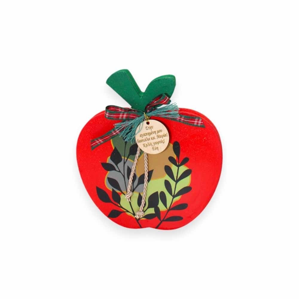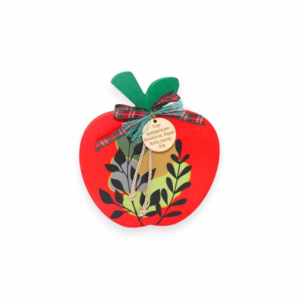 Ξύλινο επιτραπέζιο γούρι - Μήλο με κλαδάκια