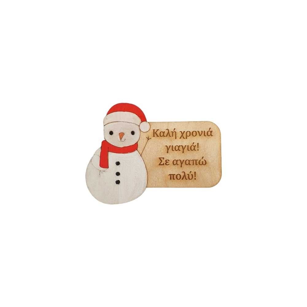 Ξύλινο μαγνητάκι - Χιονάνθρωπος με αφιέρωση