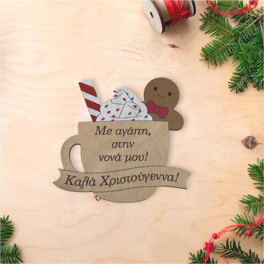 Ξύλινο μαγνητάκι - Χριστουγεννιάτικο φλιτζάνι με αφιέρωση