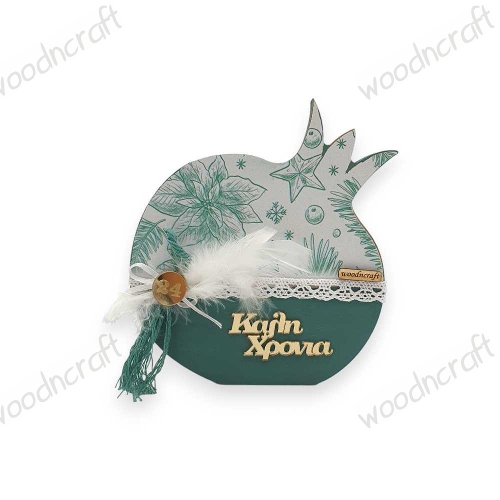 Χειροποίητο Ξύλινο Γούρι - Ρόδι Καλή Χρονιά