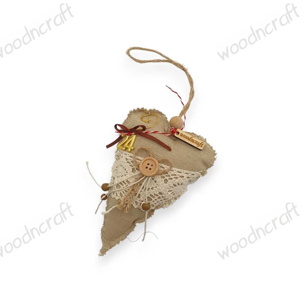 Το κεντρικό στοιχείο από αυτό το γούρι είναι ένα μαξιλαράκι, περίπου 15 εκατοστά σε σχήμα καρδιάς, υπενθύμιση της αγάπης και της ζεστασιάς. Η δαντέλα που το διακοσμεί προσθέτει μια ρομαντική και διακριτική πινελιά, ενώ το κορδόνι, οι ξύλινες χάντρες και το κουμπί προσδίδουν μια παραδοσιακή αίσθηση.