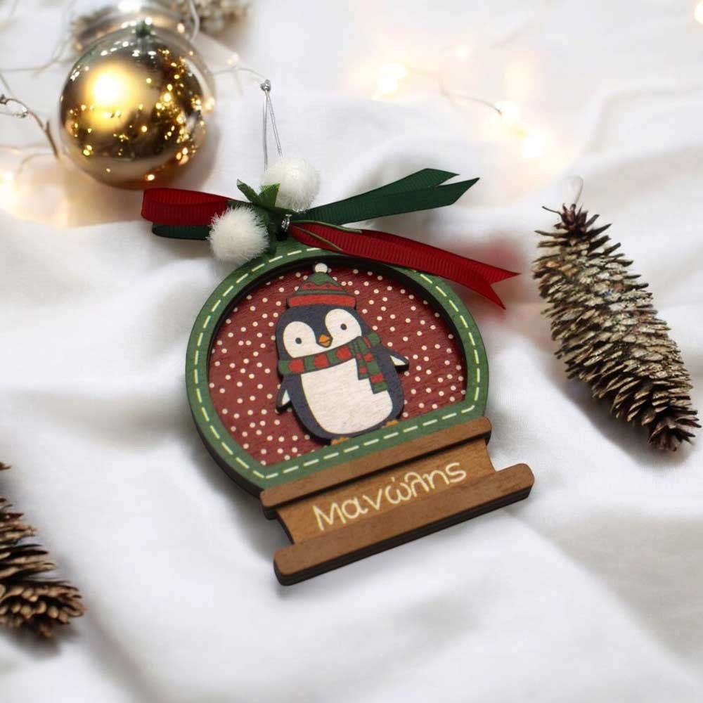 Γιορτάστε τα Χριστούγεννα με ένα προσωποποιημένο χειροποίητο ξύλινο στολίδι "Christmas Penguin". Κατασκευασμένο με τρεις στρώσεις ξύλου για μια εντυπωσιακή 3D αίσθηση, αυτό το στολίδι θα προσθέσει μια ξεχωριστή πινελιά στο χριστουγεννιάτικο δέντρο σας.