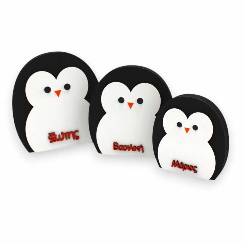 Κάντε το διακοσμητικό σας ακόμη πιο προσωπικό! Προσθέστε τα ονόματα της οικογένειάς σας ή χαρίστε το ως δώρο σε αγαπημένα σας πρόσωπα. Επιπλέον, δίνεται η δυνατότητα στον πελάτη να προσθέσει επιπλέον μέλη, δημιουργώντας μια ολοκληρωμένη οικογένεια πιγκουίνων που θα ταιριάζει απόλυτα στον χώρο του.
