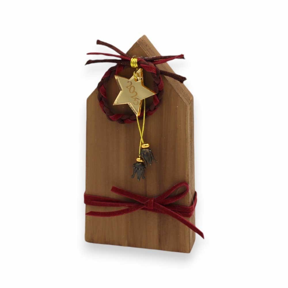 Ξύλινο επιτραπέζιο γούρι 2025 - Σπιτάκι με Στεφάνι