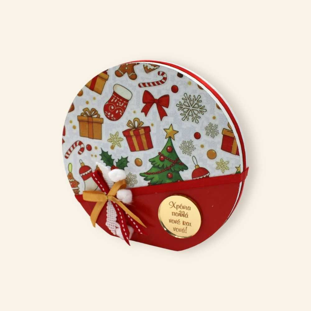 Το γούρι αποτελείται από έναν ξύλινο κύκλο διαμέτρου 10 εκ., εκτυπωμένο με χαρούμενο χριστουγεννιάτικο μοτίβο, που δίνει ζωντάνια και εορταστική διάθεση.