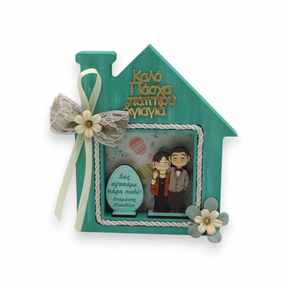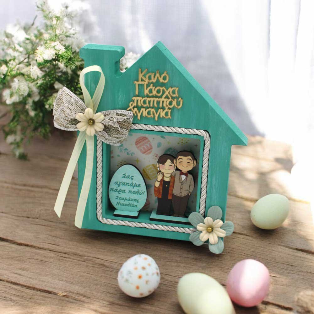 Στο πάνω μέρος υπάρχει η φράση Καλό Πάσχα παππού και γιαγιά από χρυσό πλεξιγκλάς προσθέτοντας μια μικρή λάμψη!