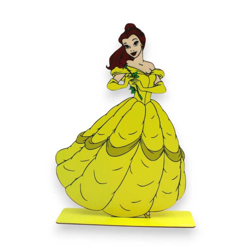 Ξύλινη φιγούρα στολισμού με την αγαπημένη πριγκίπισσα Μπελ του κλασικού παραμυθιού η πεντάμορφη και το τέρας. Ιδανική επιλογή για να διακοσμήσετε το παιδικό δωμάτιο, την βάφτιση το παιδιού, το πάρτι γενεθλίων κλπ.