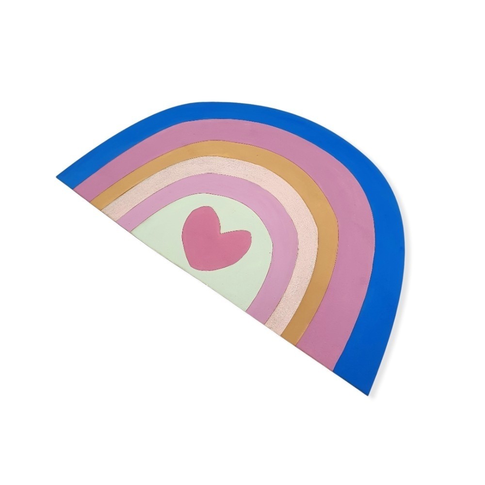 Ξύλινο σταντ στολισμού βάπτισης σε σχέδιο ουράνιο τόξο καρδιά. Ένα πρωτότυπο σχέδιο κατάλληλο για τη διακόσμηση του παιδικού δωματίου και του πάρτι γενεθλίων! Ιδανικό για μια μαγική παραμυθένια βάπτιση.