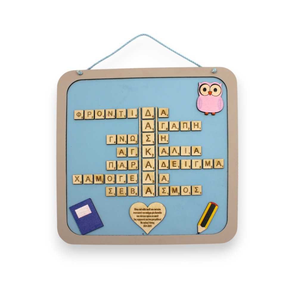 Ξύλινο χειροποίητο κάδρο δασκάλα με γράμματα scramble τα οποία σχηματίζουν όλες τις λέξεις που χαρακτηρίζουν την καλύτερη δασκάλα!