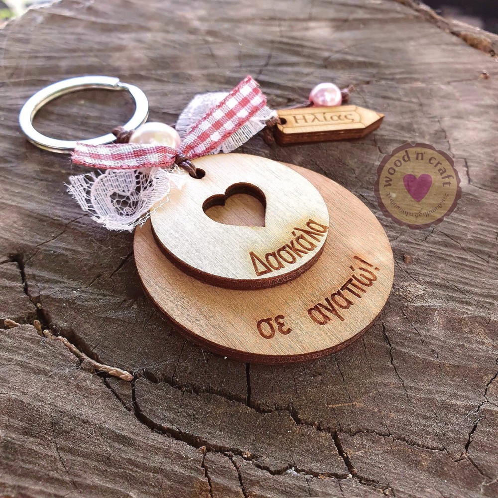 Μοναδικό ξύλινο χειροποίητο μπρελόκ με αφιέρωση αγάπης για την δασκάλα και κρεμαστό μολυβάκι με το όνομα του παιδιού..!