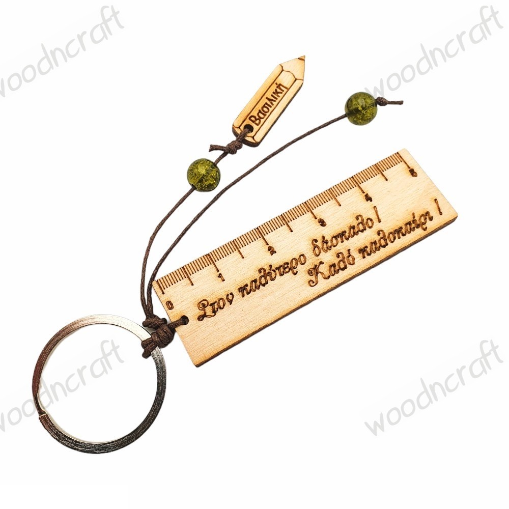 Αναζητάτε το τέλειο δώρο για τον αγαπημένο σας δάσκαλο; Τότε, το μπρελόκ χάρακας είναι η ιδανική επιλογή για εσάς! Σχεδιασμένο και κατασκευασμένο στο εργαστήριο μας, αυτό το ξύλινο μπρελόκ χάρακας είναι διακοσμημένο με χάντρες και διαθέτει ένα προσαρμοσμένο ξύλινο κρεμαστό μολυβάκι χαραγμένο με το όνομα του μαθητή ή της μαθήτριας.