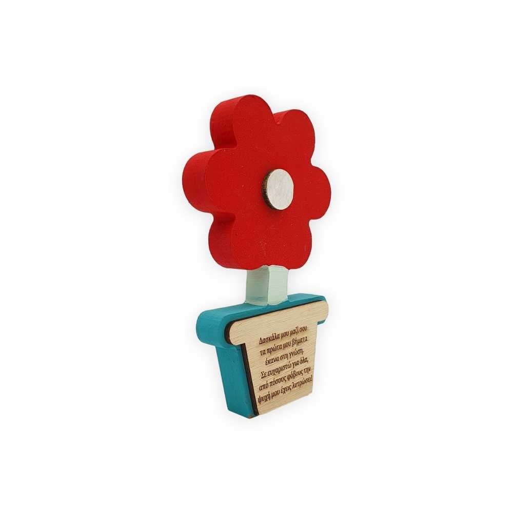 Χειροποίητο αυτοστηριζόμενο διακοσμητικό σε σχέδιο γλαστράκι με λουλούδι μαργαρίτα! Φτιαγμένο από ξύλο, βαμμένο στο χέρι και προσωποποιημένο με χαραγμένη αφιέρωση της επιλογής σας για την καλύτερη δασκάλα.