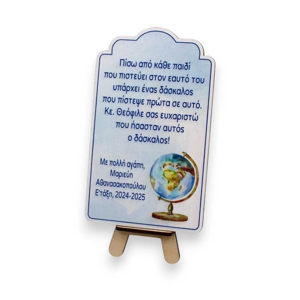 Ιδανικό για να εκφράσετε την ευγνωμοσύνη σας στη δασκάλα που φροντίζει τα παιδιά σας, αυτό το καδράκι αποτελεί ένα τρυφερό και συναισθηματικό δώρο που θα κρατήσει για πάντα. Είναι κατάλληλο για κάθε περίσταση, όπως το τέλος της σχολικής χρονιάς ή μια ειδική μέρα.
