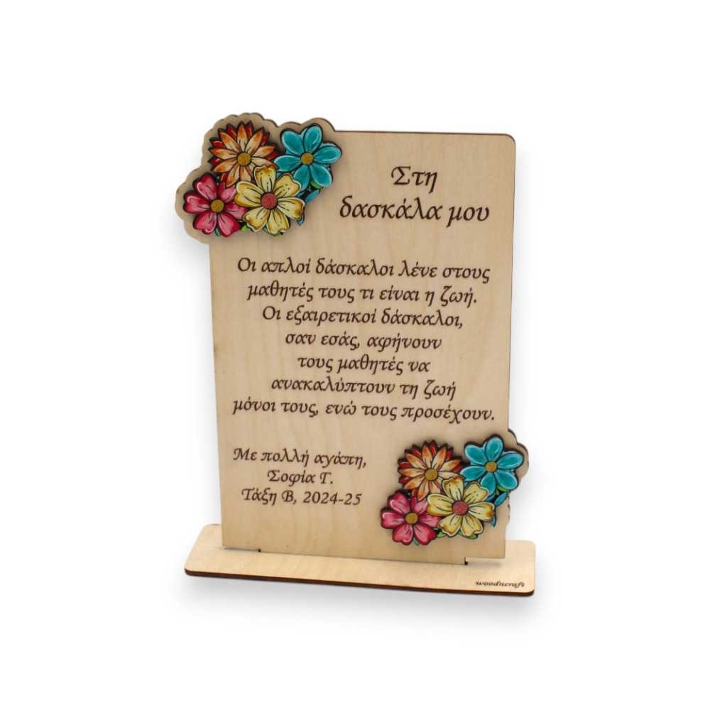 Ξύλινο χειροποίητο επιτραπέζιο σχολικό αναμνηστικό ή και δώρο για τους δασκάλους με ένα κοριτσάκι που κρατάει ένα βιβλίο με χαραγμένο αποχαιρετιστήριο κείμενο για το σχολείο!
