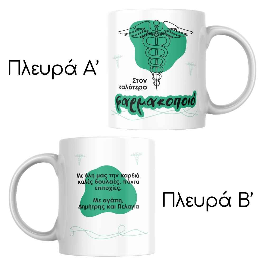 Πρωτότυπη και μοναδική κούπα από λευκή πορσελάνη με τυπωμένο σκίτσο μαγείρισσας από την μία πλευρά και την αφιέρωση της επιλογής σας από την άλλη!