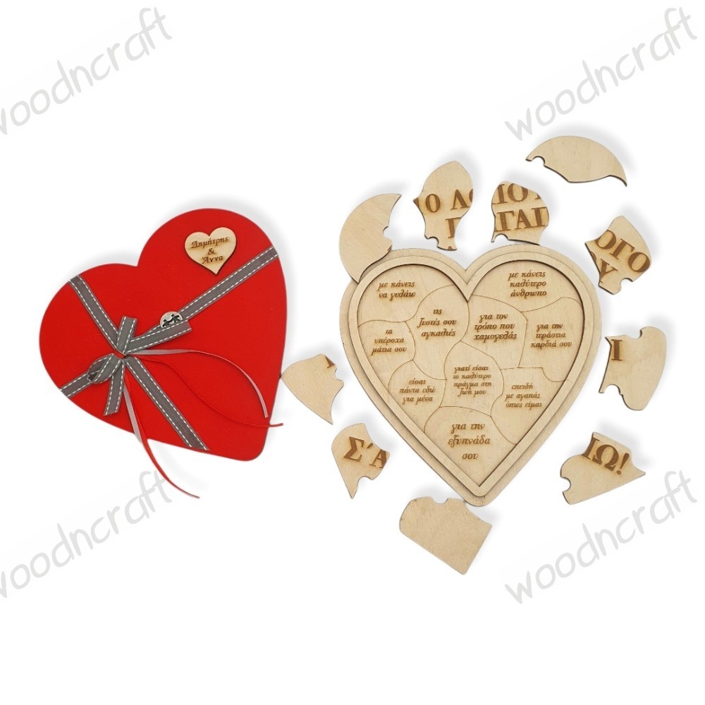 Ξύλινο παζλ κουτί καρδιά - 10 λόγοι που σ αγαπώ