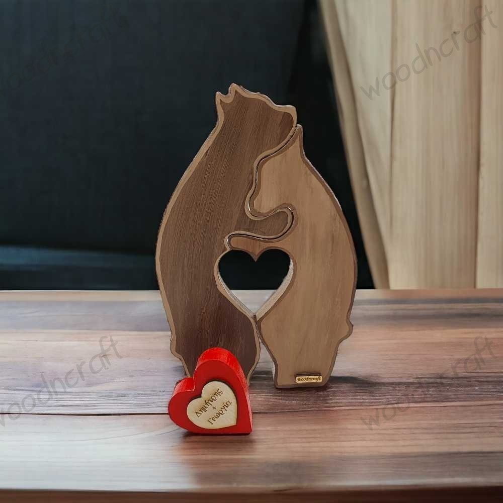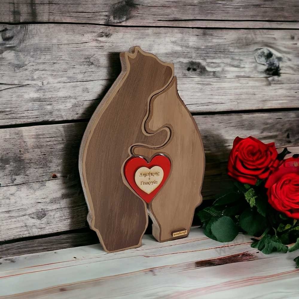 Αφήστε τον έρωτα να ανθίσει με το "Bears in Love", ένα εντυπωσιακό ξύλινο επιτραπέζιο διακοσμητικό από την Woodncraft! Φανταστείτε δύο χαριτωμένες ξύλινες αρκούδες, έτοιμες να μοιραστούν την αγάπη τους. Ανάμεσά τους, μία καρδιά, σύμβολο της αιώνιας αγάπης, με την δική σας προσωπική πινελιά: τα ονόματά σας χαραγμένα σε μια μικρότερη καρδούλα πάνω της.