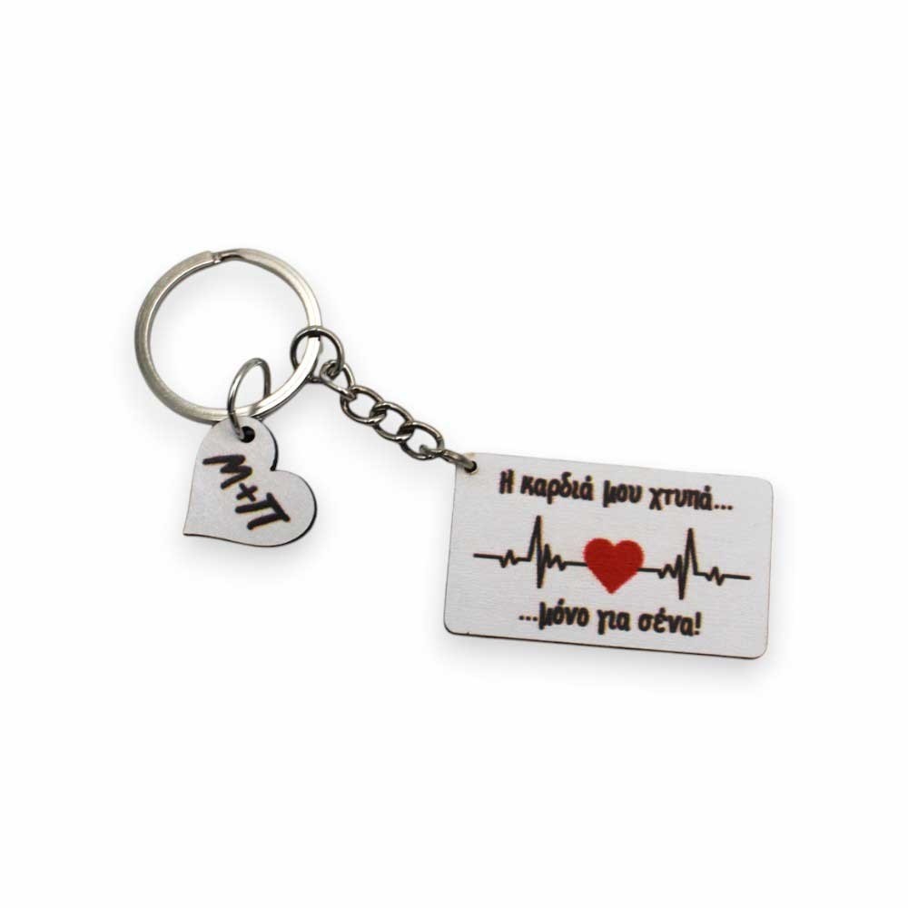 Ξύλινο μπρελόκ Αγάπης - Η καρδιά μου χτυπά μόνο για σένα