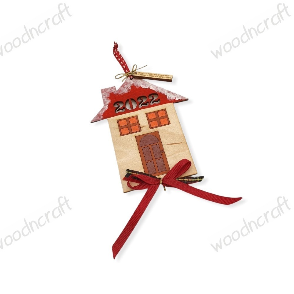 Πρωτότυπο ξύλινο χειροποίητο γούρι σε σχέδιο σπιτάκι με διάτρητα νουμεράκια από την χρονιά που μας έρχεται, βαμμένο στο χέρι και διακοσμημένο με κορδελάκια και ταμπελάκι χαραγμένο με τα στοιχεία σας!