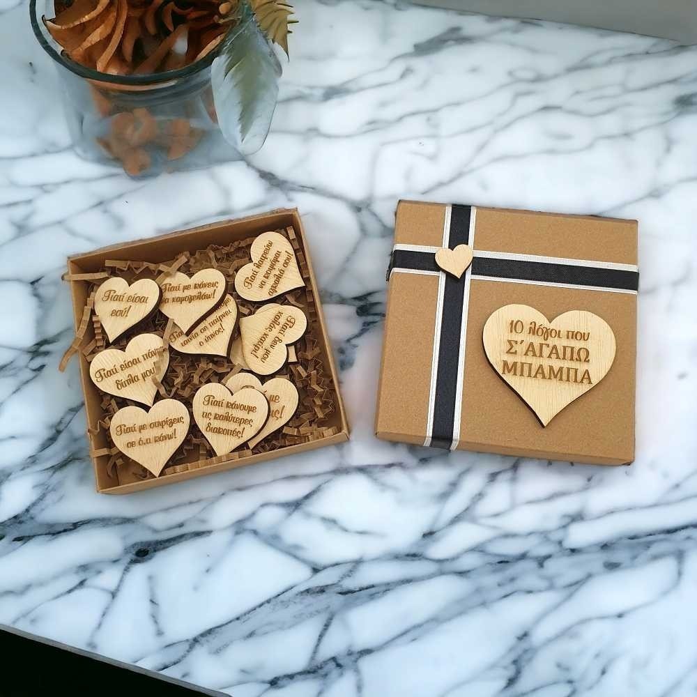 Κουτάκι δώρου με καρδιές - 10 λόγοι που Σ' ΑΓΑΠΩ ΜΠΑΜΠΑ