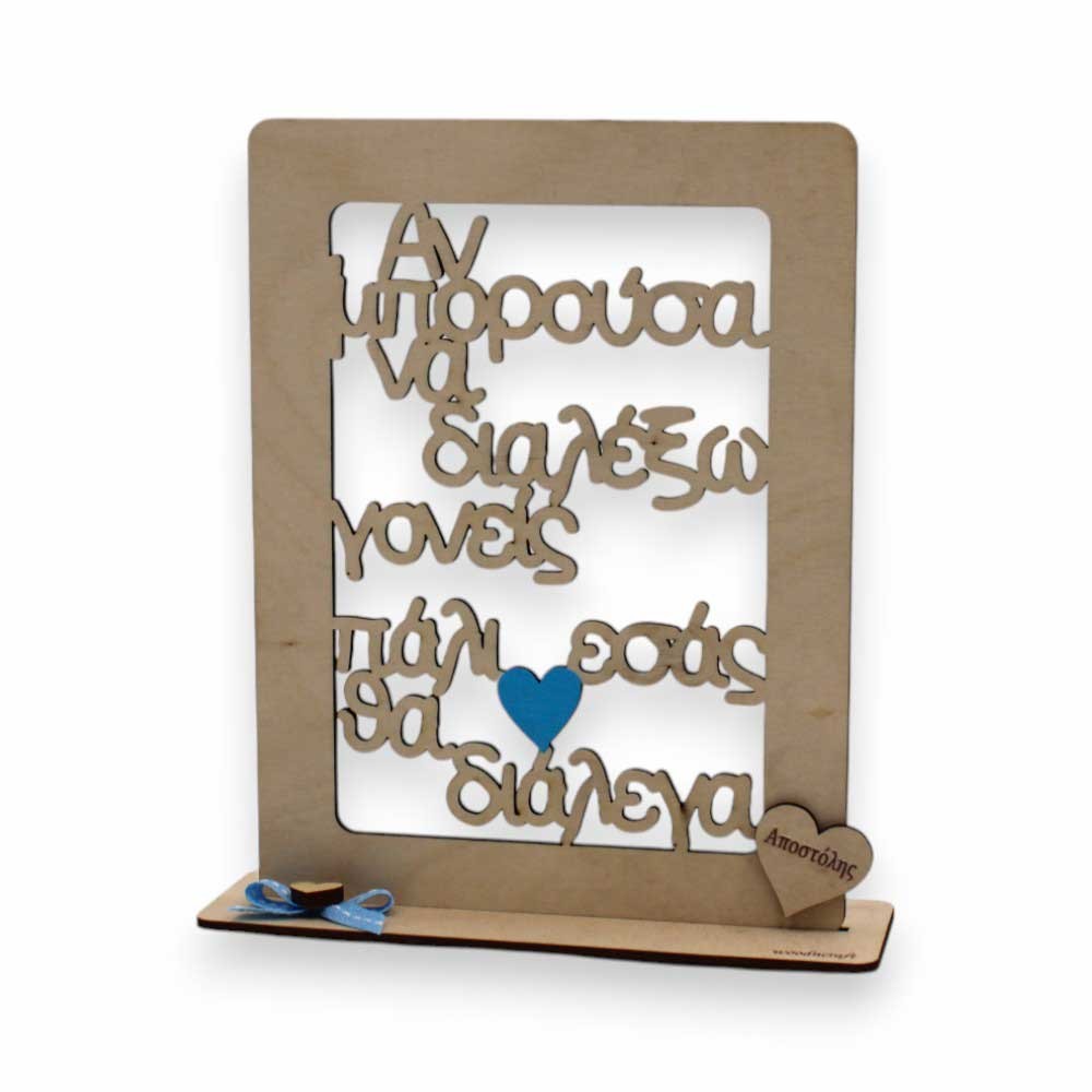 Ξύλινο χειροποίητο επιτραπέζιο διακοσμητικό με καρδούλες και αφιέρωση για την καλύτερους γονείς